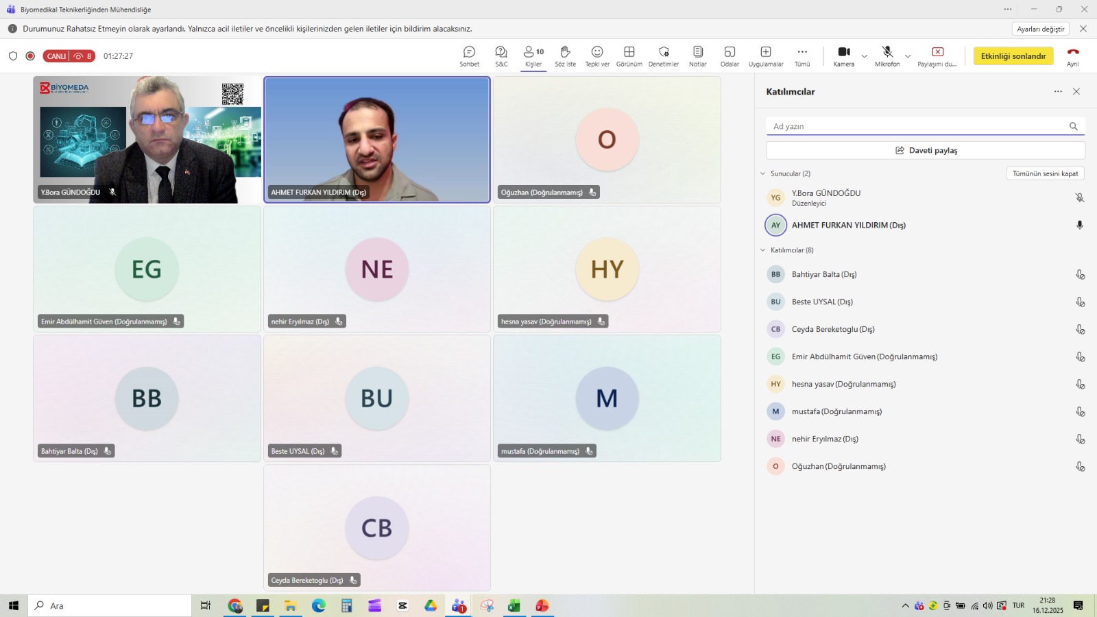 24 Aralık 2025 “Biyomedikal Bilimlerde Sektör Beklentileri, Görev Tanımları ve Kişisel Gelişim Yol Haritası” konu başlıklı etkinliğimizi gerçekleştirdik.